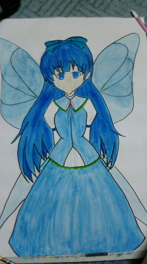 青い絵の具しかなかったから、3ヶ所ほどペンを使ったよ☆